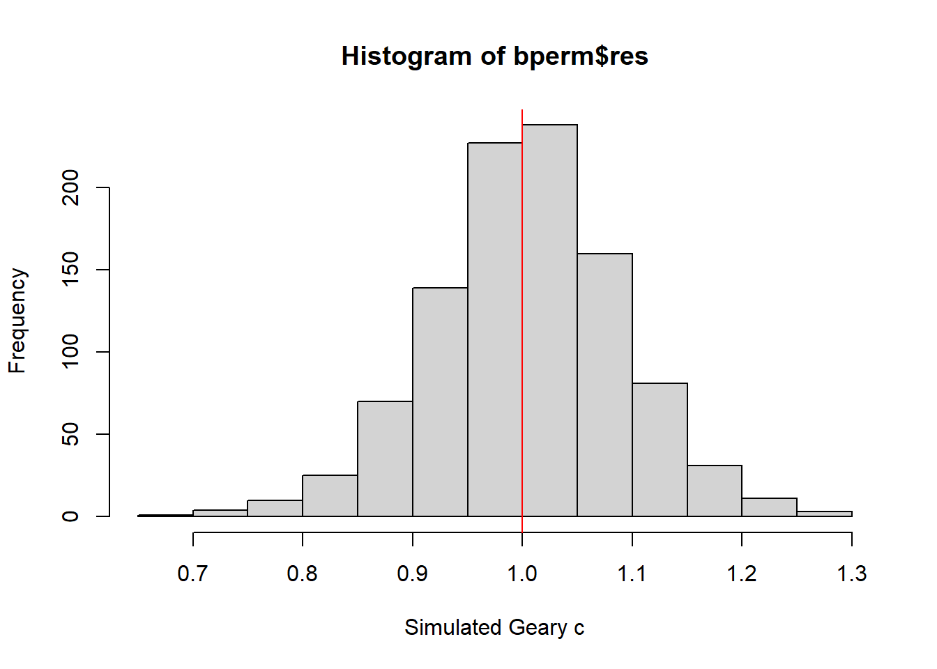 The output of localG() is a vector of G or Gstar values, with attributes “gstari” set to TRUE or FALSE, “call” set to the function call, and class “localG”.