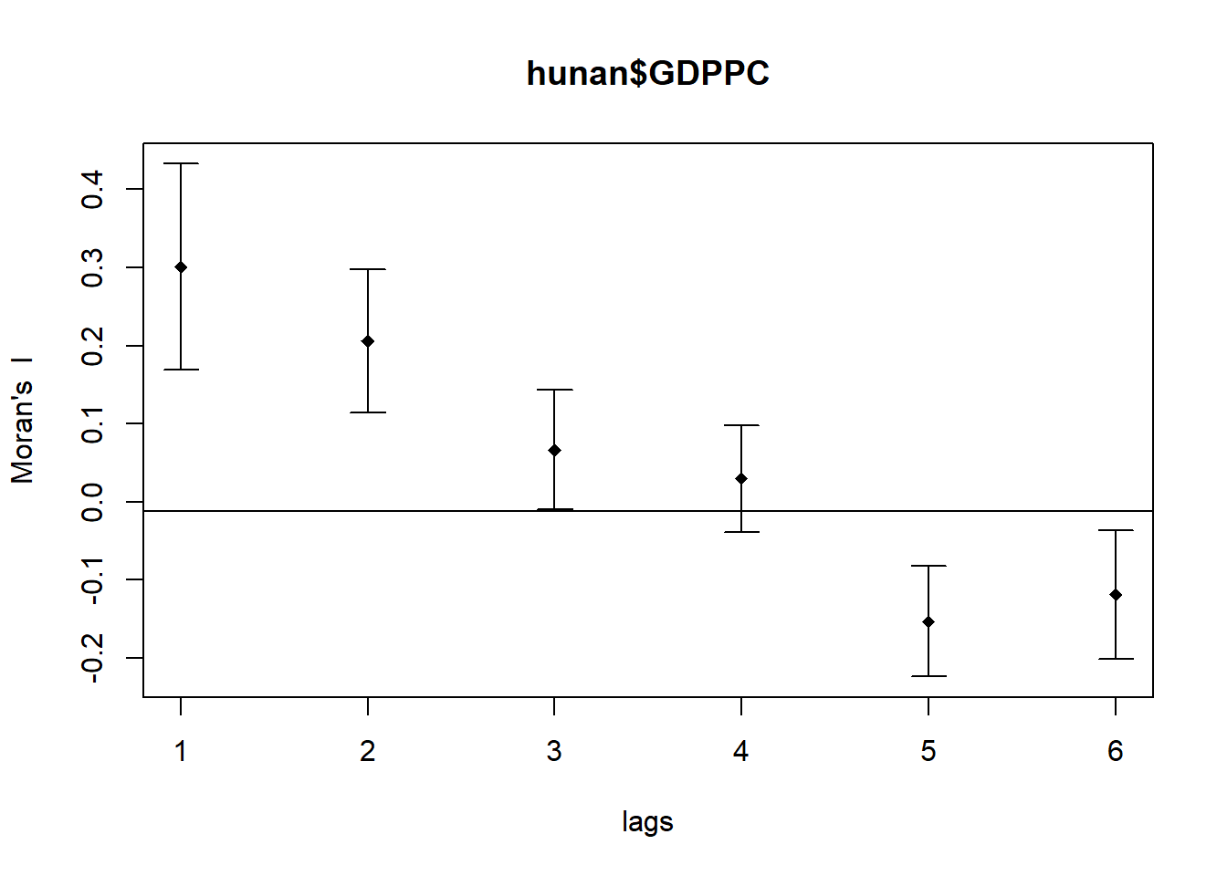 compute and plot spatial correlogram using appropriate function of spdep package