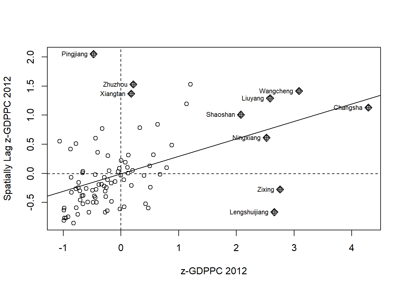 plot Moran scatterplot,